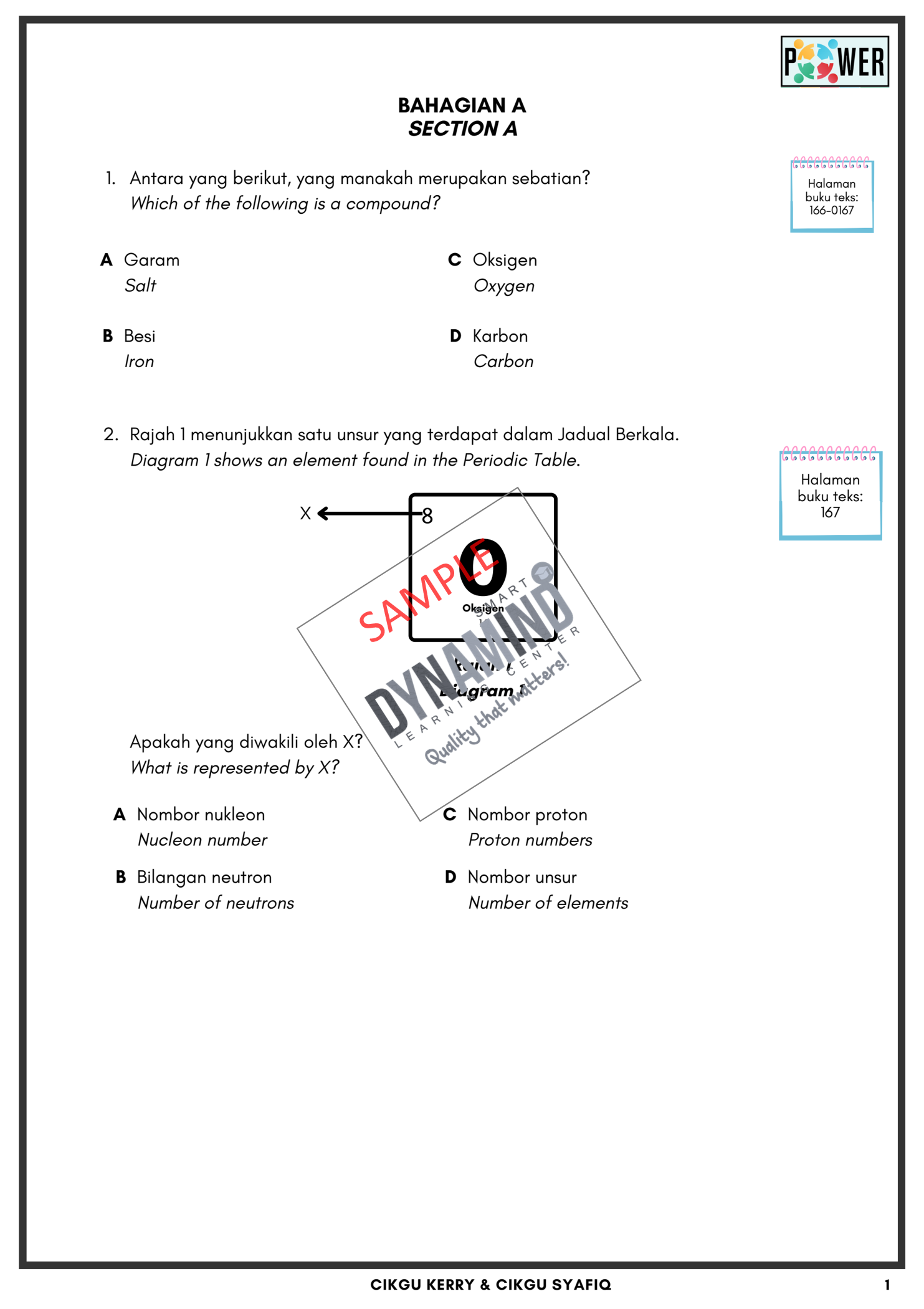 1 SET ULANGKAJI BAB 6 – BAB 9 SAINS TINGKATAN 1 (FORMAT UASA) – POWER by Cikgu Kerry