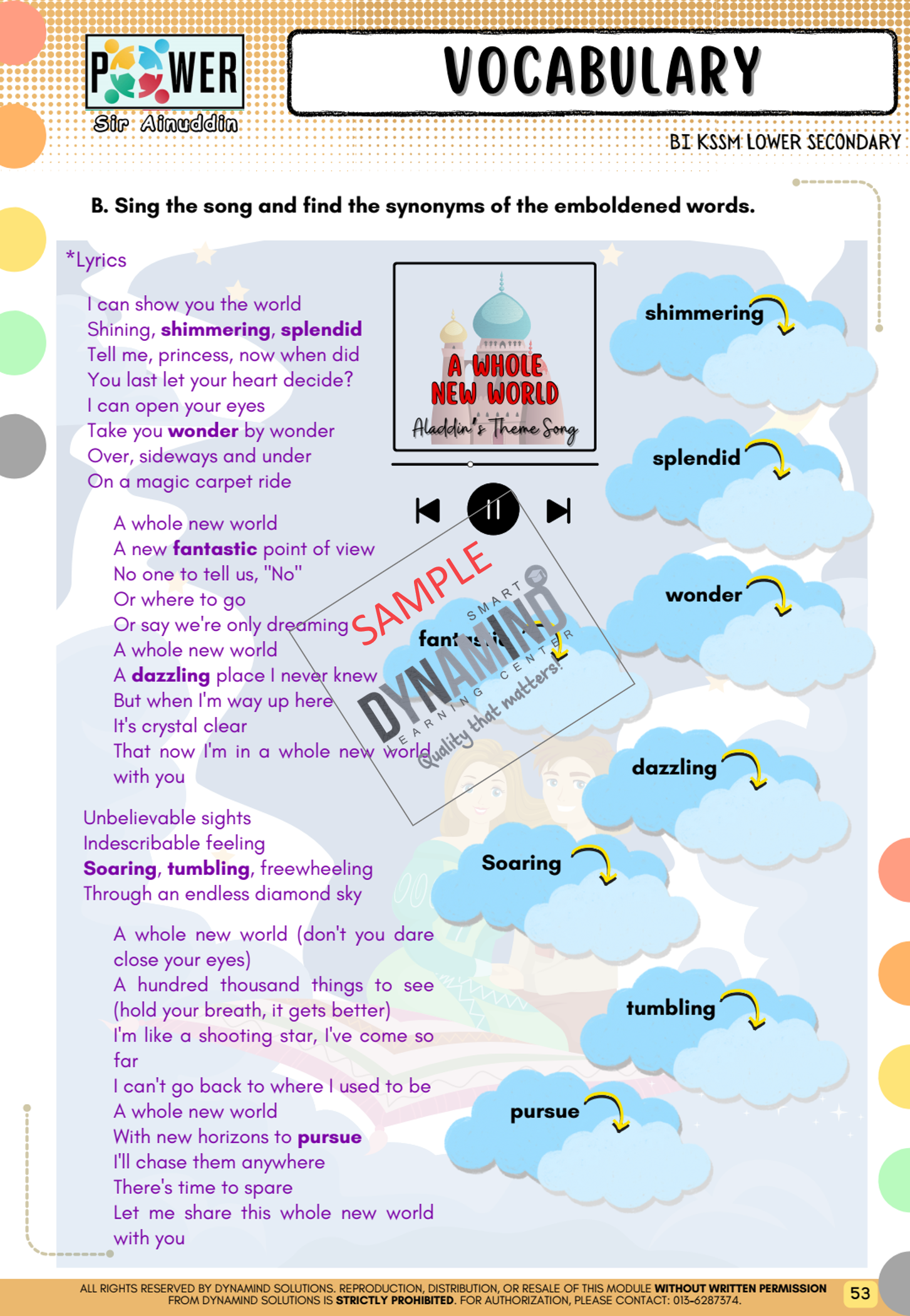 📍 Tema Unik & menarik minat melalui lagu, cerita dongeng, filem & karakter popular serta situasi harian
